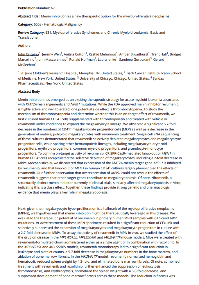 Menin inhibition as a new therapeutic option for the myeloproliferative neoplasms