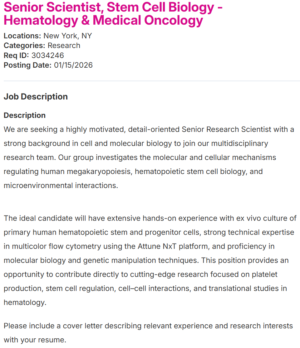 Mount Sinai Health System is looking to hire two Senior Scientists. Use the links below for more information and to apply for the position(s).