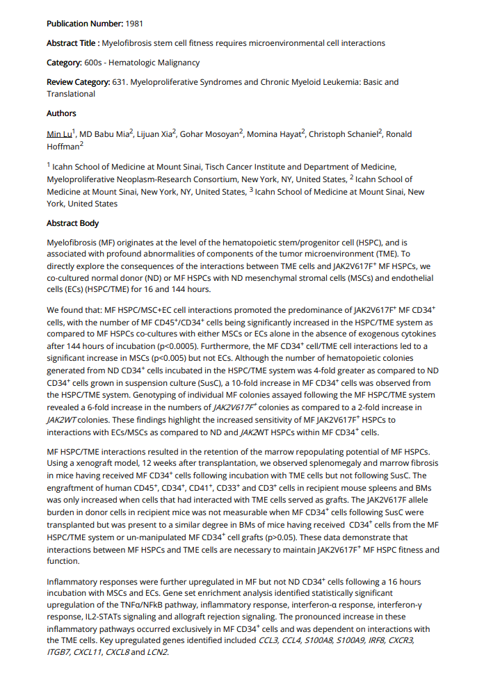 Myelofibrosis stem cell fitness requires microenvironmental cell interactions
